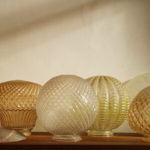 Cúpula de vidro leitoso para lustre em formato de pinha.
