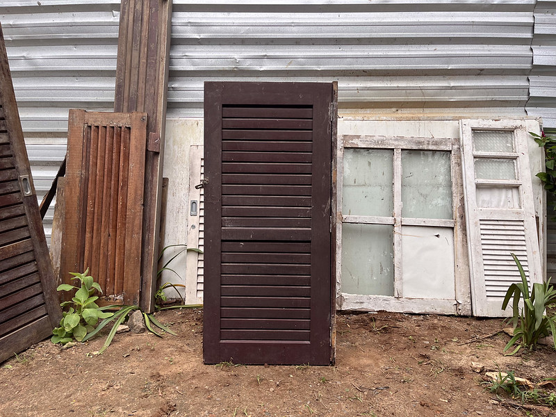 Folha de janela de madeira com veneziana cega – 57 x128 cm