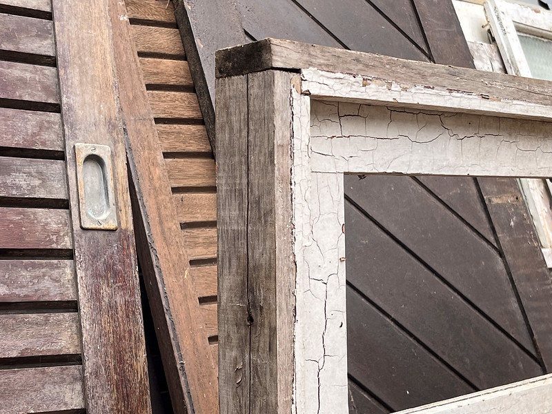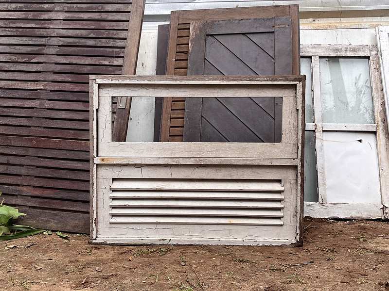 Folha de janela com treliça de madeira
