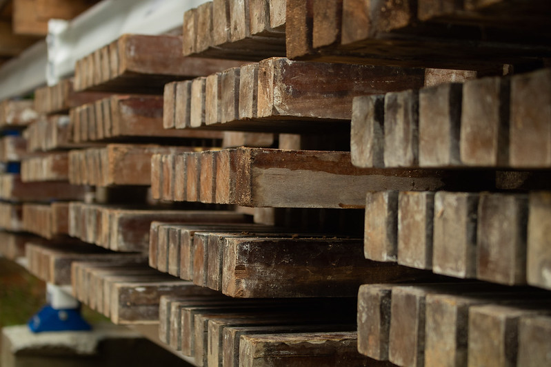 Placa de forro ripado de madeira, dos corredores do Othon Palace Hotel, em Ondina.