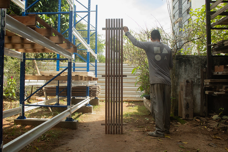 As placas são sustentadas por três ripas de dimensões 3,5 x 3,5 cm, podendo variar meio centímetro.