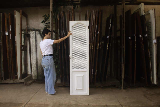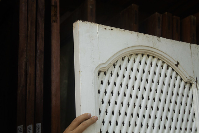 Porta de armário treliçada de madeira maciça e pintura branca – 47,5 x 183,5 cm