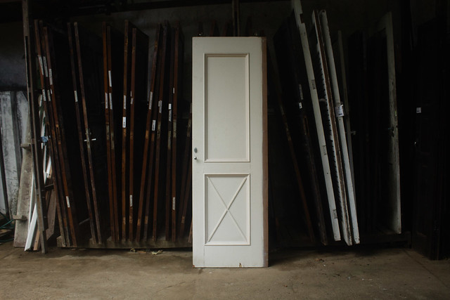 Porta de madeira maciça com revestimento laminado de compensado e pintura branca