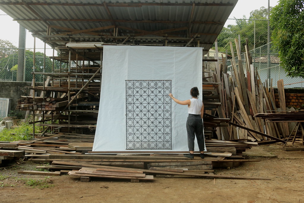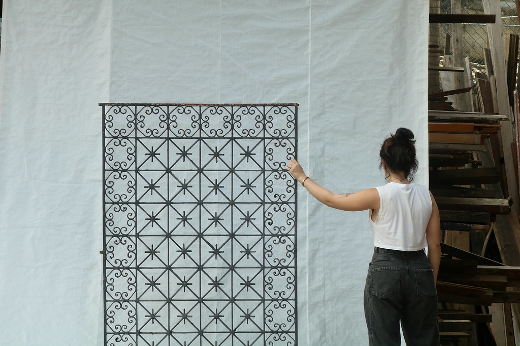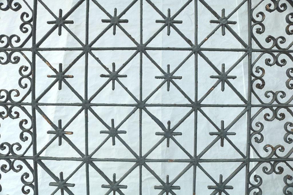 Serralheria proveniente de casa no bairro de Itapuã, com moldura em vergalhão quadrado 1/2″ e interior desenhado em vergalhão 1/4″